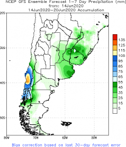 Previsão de Precipitação Argentina, 7 dias, em milímetros.