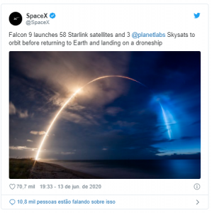 Empresa agora conta com 542 satélites em órbita. Foguete Falcon 9 também levou ao espaço três satélites de observação terrestre da Planet Labs