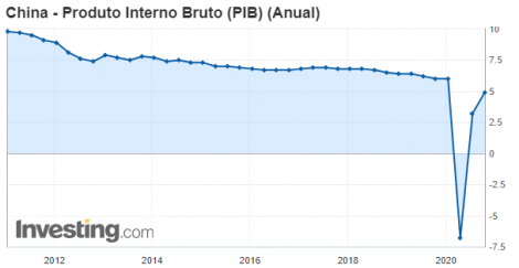 A economia da China cresceu 4,9% no 3o trimestre, na comparação anual, após crescimento de 3,2% registrado no segundo trimestre. A alta veio abaixo do esperado pelo mercado, que era de 5,2%. Frente ao trimestre anterior o PIB da China cresceu 2,7%, abaixo dos 3,2% esperados.