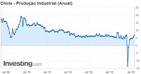 A produção industrial da China aumentou 6,9% em setembro na comparação anual, após alta de 5,6% em agosto e expectativa de 5,8%. Já as vendas do varejo tiveram crescimento de 3,3%, após alta de 0,5% em agosto e expectativa de 1,8%.