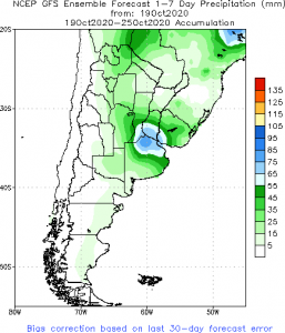 Previsão de Precipitação Argentina, 7 dias, em milímetros.