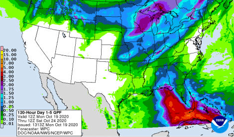 Previsão de Precipitação EUA, 5 dias, em polegadas.