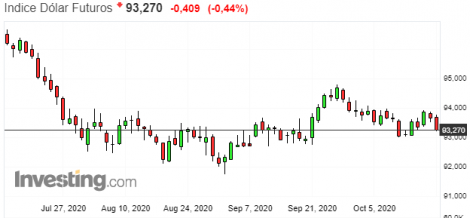 O dólar opera em baixa frente a outras moedas. A presidente da Câmara dos Deputados dos EUA, a democrata Nancy Pelosi, disse ontem que está otimista com possibilidade da aprovação do novo pacote de estímulo antes das eleições presidenciais de 3 de novembro. A porta-voz da Casa Branca, Alyssa Farah, também disse que Casa Branca está “cautelosamente otimista” em relação ao novo auxílio: “Estamos nos sentindo cautelosamente otimistas de que ela (Pelosi) pode estar se movendo em direção ao ponto que definimos”.