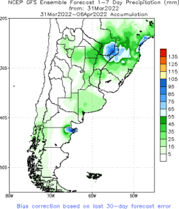 Na Argentina, tempo chuvoso em boa parte das regiões produtoras até a próxima semana.