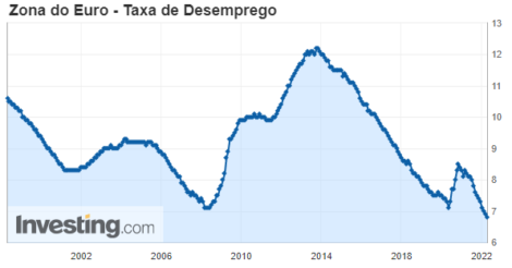 A taxa de desemprego na zona do euro caiu para 6,8% em fevereiro, de 6,9% em janeiro, para o menor nível histórico, segundo a Eurostat.
