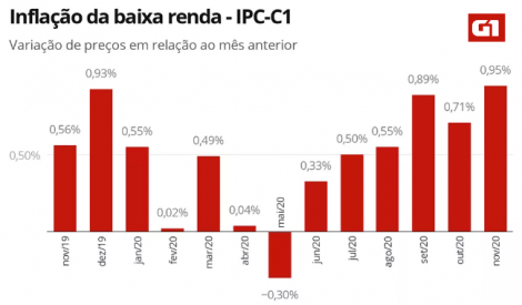 No Brasil a moeda sobe recuperando parte das baixas recentes. Ontem a moeda recuou 1,93%, a R$ 5,1401. A Organização para a Cooperação e Desenvolvimento Econômico (OCDE) passou a projetar uma queda de 6% no PIB do Brasil em 2020, ante estimativa anterior de queda de 6,5%. Para 2021 a projeção de crescimento foi revisada de 3,6% para 2,6%, e para 2022 a previsão é de crescimento de 2,2%. Para a economia global a OCDE prevê recuo de 4,2% no PIB deste ano, crescimento de 4,2% em 2021 e de 3,7% em 2022. A inflação das famílias com renda entre um e 2,5 salários mínimos, medido pelo Índice de Preços ao Consumidor – Classe 1 (IPC-C1), tiveram alta de 0,95% em novembro, após alta de 0,71% em outubro, segundo a Fundação Getulio Vargas (FGV). Com o resultado, o indicador acumula alta de 4,85% no ano e 5,82% nos últimos 12 meses, acima da inflação oficial do país. Segundo a FGV, 6 das oito classes de despesa componentes do IPC-C1registraram acréscimo em suas taxas em novembro: Transportes (0,29% para 0,90%), Educação, Leitura e Recreação (1,33% para 2,56%), Saúde e Cuidados Pessoais (0,05% para 0,23%), Habitação (0,28% para 0,39%), Alimentação (2,08% para 2,18%) e Despesas Diversas (-0,01% para 0,11%).