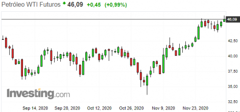 Os futuros do petróleo seguem em alta após a OPEP e a Rússia concordarem ontem em diminuir os cortes na produção de petróleo de janeiro em 500.000 barris por dia, mas não chegaram a um acordo sobre uma política mais ampla para o resto do ano que vem.