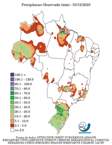 No Brasil, tempo chuvoso em boa parte do país até a próxima semana.
