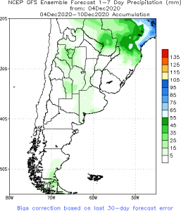 Previsão de Precipitação Argentina, 7 dias, em milímetros.