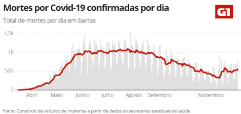 No Brasil, o número de casos de COVID-19 subiu para 6.487.507 hoje, de 6.436.650 até ontem, segundo o consórcio de veículos de imprensa a partir de dados das secretarias estaduais de Saúde. O número de mortos chegou a 175.307, de 173.862 até ontem. O número de pacientes recuperados somam 5.725.010, de 5.698.353 até ontem.
