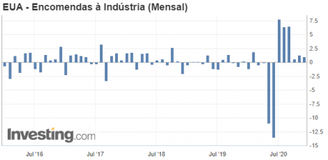As novas encomendas às indústrias dos EUA cresceram 1,0% em outubro, após alta de 1,3% em setembro, segundo o Departamento de Comércio. As encomendas para bens de capital, excluindo defesa e aeronaves, subiram 0,8% em outubro, após crescimento de 0,7% em setembro.