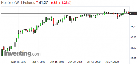 No Brasil a moeda opera com quase 2% de alta acompanhando o exterior. Ontem a moeda subiu 0,95%, a R$5,3427. O Banco Central realizou hoje leilão de até 10 mil contratos de swap cambial tradicional com vencimento em novembro de 2020 e março de 2021. A inflação oficial do Brasil medida pelo Índice Nacional de Preços ao Consumidor Amplo (IPCA) subiu 0,36% em julho, após alta de 0,26% em junho, segundo o Instituto Brasileiro de Geografia e Estatística (IBGE). A alta foi puxada principalmente pela alta da gasolina e da energia elétrica. No acumulado em 2020, o IPCA sobe 0,46%, e em 12 meses, alta de 2,31%.