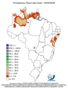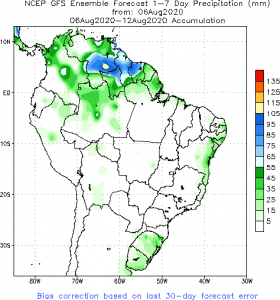 Previsão de Precipitação Brasil, 7 dias, em milímetros.