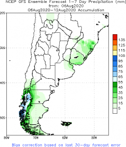 Previsão de Precipitação Argentina, 7 dias, em milímetros.