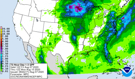 Previsão de Precipitação EUA, 72 horas, em polegadas.