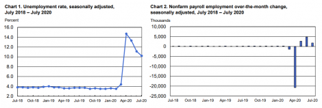O dólar opera em alta frente a outras moedas. O setor não agrícola dos EUA criou 1,763 bilhão de empregos em julho, após criação de 4,737 milhões em junho, segundo o relatório Payroll. A criação de empregos veio praticamente em linha com o esperado pelos analistas. A taxa de desemprego caiu de 11,1% para 10,2% em julho, ante expectativa de queda para 10,5%.