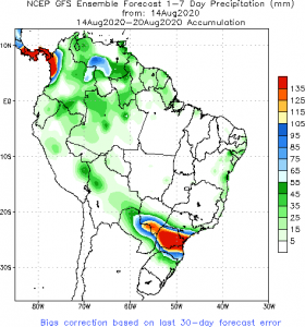 Previsão de Precipitação Brasil, 7 dias, em milímetros.