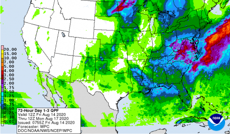 Previsão de Precipitação EUA, 72 horas, em polegadas.