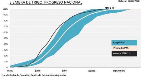 O plantio do trigo 2020/21 na Argentina atingiu 99,7% dos 6,5 milhões de hectares projetados para esta safra, segundo a Bolsa de Cereales de Buenos Aires. Na semana o avanço foi de 2,4 pontos percentuais. Em relação ao ano passado o plantio está praticamente em linha. No norte do país, as expectativas de produtividade são reduzidas semana a semana devido à seca. Situação semelhante se registra no centro-oeste da região agrícola, à medida que o cultivo avança em seu estágio.