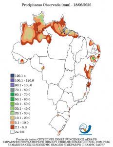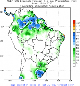 Previsão de Precipitação Brasil, 7 dias, em milímetros.
