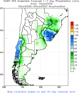 Previsão de Precipitação Argentina, 7 dias, em milímetros.