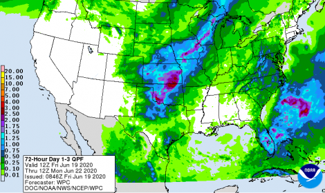 Previsão de Precipitação EUA, 72 horas, em polegadas.
