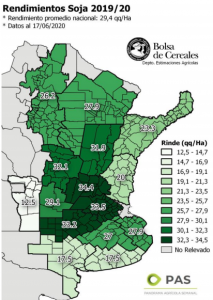 A colheita de soja 2019/20 na Argentina está finalizada, segundo a Bolsa de Cereales de Buenos Aires. Com produtividade média de 2,94 toneladas por hectare, a produção total chegou a 49,6 milhões de toneladas.