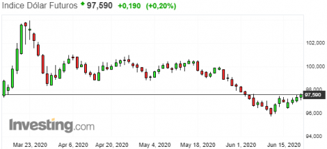 No Brasil o dólar recua após 7 altas seguidas. Ontem a moeda subiu 2,07%, a R$5,3698. O secretário do Tesouro Nacional, Mansueto Almeida, admitiu ontem que governo pode registrar um rombo superior a R$ 800 bilhões neste ano, bem acima dos R$ 708,7 bilhões da estimativa inicial. Já os economistas e a Instituição Fiscal Independente (IFI) do Senado projetam um déficit além dos R$ 900 bilhões. O Instituto de Pesquisa Econômica Aplicada (Ipea) reduziu sua projeção para a inflação medida pelo Índice Nacional de Preços do Consumidor Amplo (IPCA) deste ano de 2,9% para 1,8%, com a elevação do preço dos alimentos sendo compensada pelos demais bens de consumo, principalmente serviços e bens duráveis. Os preços dos alimentos devem subir 3%, enquanto os bens administrados devem ter alta de 1,2%, abaixo da alta de 5,5% registrada em 2019 e de 6,2% em 2018. A Utilização da Capacidade Instalada da indústria do Brasil subiu de 49% em abril para 55% em maio, segundo dados da Confederação Nacional da Indústria (CNI). O Produto Interno Bruto (PIB) do Brasil deve encolher 6,5% em 2020, segundo a projeção do Instituto Brasileiro de Economia da Fundação Getulio Vargas (Ibre/FGV). A projeção também prevê queda de 10% no comércio e de 14% no segmento de “outros serviços”.