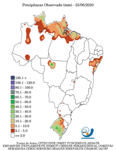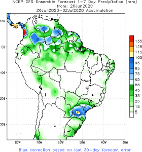 Previsão de Precipitação Brasil, 7 dias, em milímetros.