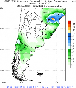 Previsão de Precipitação Argentina, 7 dias, em milímetros.
