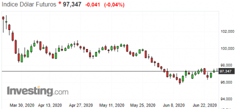 O dólar opera próximo à estabilidade. O Federal Reserve está colocando novos limites para o setor bancário dos EUA depois que testes de estresse anuais descobriram que várias instituições poderiam chegar perto dos níveis mínimos de capital em cenários ligados à pandemia de coronavírus. Os grandes bancos deverão suspender as recompras de ações no terceiro trimestre e limitar o pagamento de dividendos no nível atual.