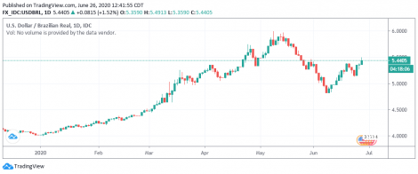No Brasil o dólar volta a se aproximar dos R$5,50. Ontem a moeda subiu 0,21%, a R$5,3358. O Banco Central ofertou hoje 12 mil contratos de swap cambial tradicional para rolagem de contratos com vencimento em novembro de 2020 e fevereiro de 2021. O número de desempregados no Brasil aumentou em 1,4 milhão da primeira semana de maio à primeira semana de junho, chegando a 11,2 milhões de desempregados, segundo o Instituto Brasileiro de Geografia e Estatística (IBGE). Apenas na primeira semana de junho houve aumento de 300 mil pessoas desempregadas. Cerca de 13,5 milhões (16,1% da população ocupada) estavam afastados do trabalho devido ao distanciamento social. Esse contingente teve redução em relação à semana anterior (14,6 milhões ou 17,2% da população ocupada) e também frente à semana de 3 a 9 de maio (16,6 milhões ou 19,8% dos ocupados).