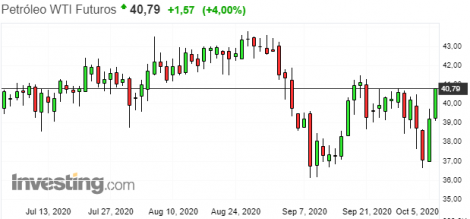 Os futuros do petróleo tem novo dia de forte alta com notícias positivas sobre Trump, greve na Noruega e com o avanço do furacão Delta em direção ao Golfo do México.