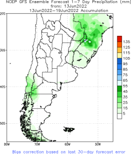 Previsão de Precipitação Argentina, 7 dias, em milímetros.