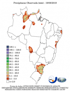 Previsão de Precipitação Brasil, 24 horas, em milímetros.