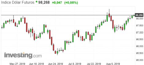 O dólar segue em alta frente a outras moedas com impasse na guerra comercial e temores sobre recessão global. Ontem o governo dos EUA concedeu uma suspensão de 90 dias para as empresas dos EUA continuarem a negociar com a Huawei, mas também adicionou 46 das afiliadas da empresa à “Lista de Entidades” que serão restringidas de fazer negócios com empresas dos EUA.