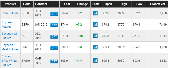 Bom dia, a Bolsa de Chicago opera com leve alta nos principais ativos. O volume de negócios na CME já começa a cair por conta do feriado de Thanksgiving Day (Dia de Acção de Graças) nos EUA nesta quinta-feira (22).
