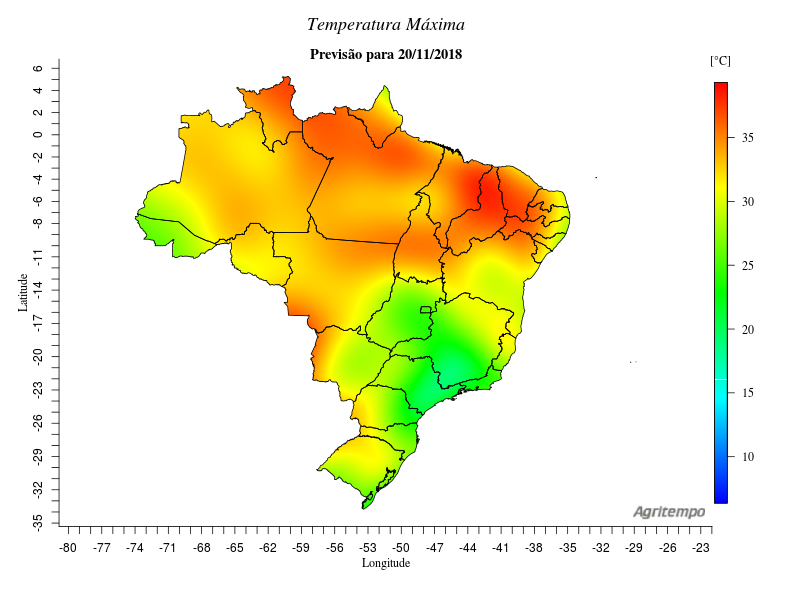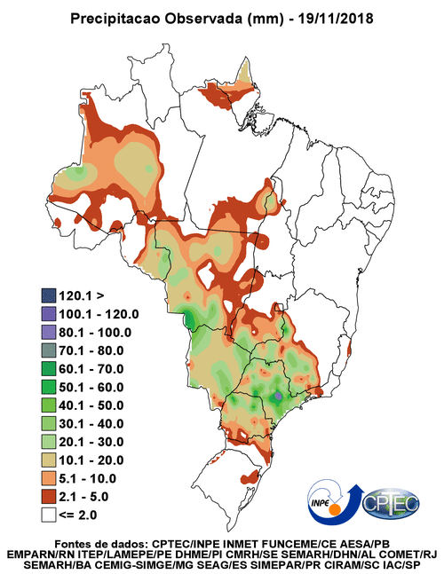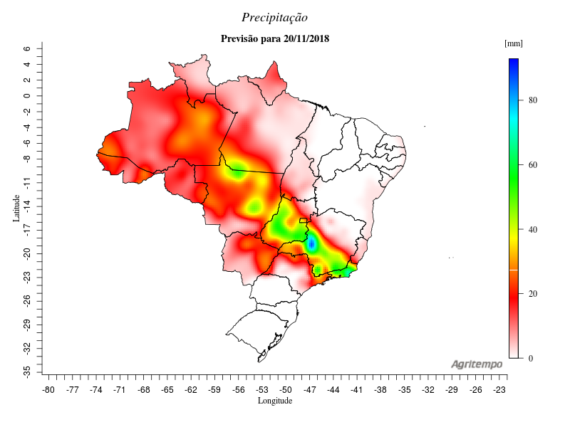 Previsão de Precipitação Brasil, 24 horas, em milímetros.