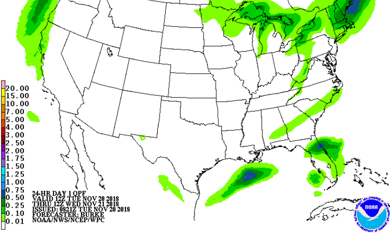 Previsão de Precipitação EUA, 24 horas, em polegadas.