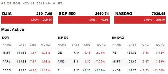 Ontem as bolsas dos EUA voltaram a fechar em baixa, puxadas pelas ações da Apple e Facebook. As ações da Apple caíram quase 4% após um relatório mostrar queda nas encomendas de produção do iPhone. As ações do Facebook caíram quase 6% após o co -fundador e CEO Mark Zuckerberg adotar estilo de gestão mais agressiva com a pressão de legisladores, investidores e usuários.
