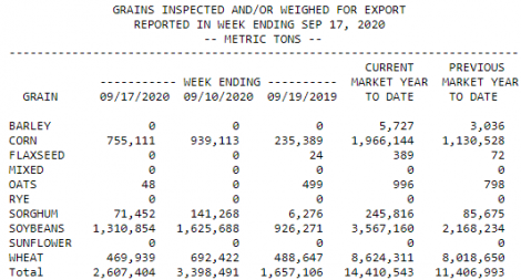 Os embarques semanais de soja dos EUA foram de 1,31 milhão de toneladas na semana encerrada no dia 17 de setembro, contra 1,63 milhão da semana anterior e 926 mil do mesmo período do ano passado, segundo o USDA. Na temporada os embarques de soja somam 3,57 milhões de toneladas, contra 2,17 milhões do mesmo período da temporada anterior. Os embarques de milho foram de 755 mil toneladas, contra 939 mil da semana anterior e 235 mil do mesmo período do ano passado. Na temporada 2020/21 os embarques de milho dos EUA somam 1,97 milhão de toneladas, contra 1,13 milhão do mesmo período do ano passado.
