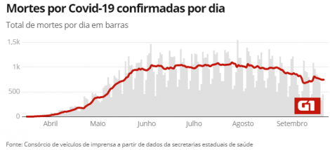 No Brasil, o número de casos de COVID-19 subiu para 4.560.083 hoje, de 4.554.629 até ontem, segundo o consórcio de veículos de imprensa a partir de dados das secretarias estaduais de Saúde. O número de mortos chegou a 137.350, de 136.895 até ontem. O número de pacientes recuperados somam 3.887.199, de 3.851.227 até ontem.