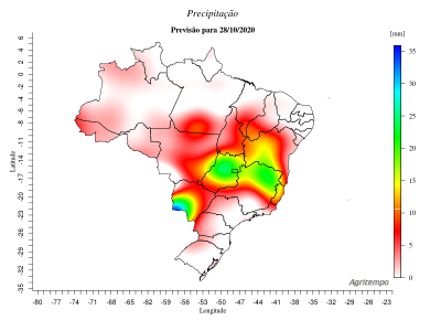 Previsão de Precipitação Brasil, 24 horas, em milímetros.