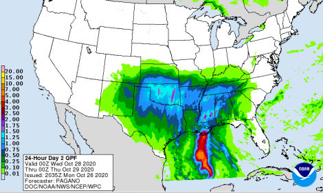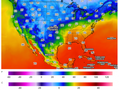 Nos EUA, tempo chuvoso no Sul amanhã.