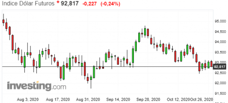 O dólar opera em baixa frente a outras moedas. O presidente Donald Trump sinalizou hoje que o novo pacote de estímulo à economia dos EUA deve ficar para após as eleições de 3 de novembro e voltou a culpar a presidente da Câmara dos Deputados, Nancy Pelosi, pelo pelo atraso do pacote de gastos.