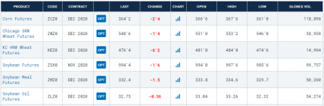 Boa tarde, a Bolsa de Chicago recua acompanhando a forte baixa do petróleo no dia de hoje com temores sobre recuo na demanda global. O USDA divulga amanhã, às 13 horas (horário de Brasília), o relatório de estoques trimestrais dos EUA.