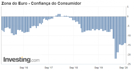 A confiança do consumidor da zona do euro subiu a 91,1 pontos em setembro, de 87,5 em agosto, segundo pesquisa mensal da Comissão Europeia. O otimismo na indústria subiu a -11,1 de -12,8, e o sentimento do consumidor subiu para -13,9, de -14,7.