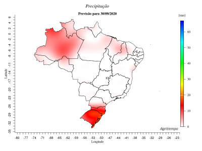 Previsão de Precipitação Brasil, 24 horas, em milímetros.