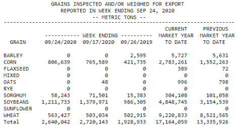 Os embarques semanais de soja dos EUA foram de 1,21 milhão de toneladas, contra 1,38 milhão da semana anterior e 986 mil do mesmo período do ano passado. Na temporada os embarques de soja dos EUA somam 4,85 milhões de toneladas, contra 3,15 milhões do mesmo período da temporada anterior. Os embarques de milho foram de 807 mil toneladas, contra 766 mil da semana anterior e 421 do mesmo período de 2019. Na temporada os embarques de milho somam 2,78 milhões de toneladas, contra 1,55 milhão do mesmo período do ano passado.