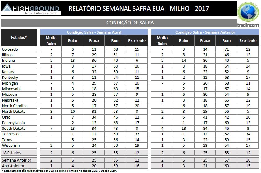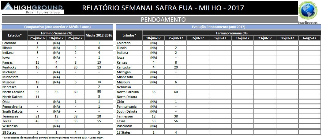 Relatório Semanal de Andamento de Safra de Milho dos EUA – USDA – 26.06.2017